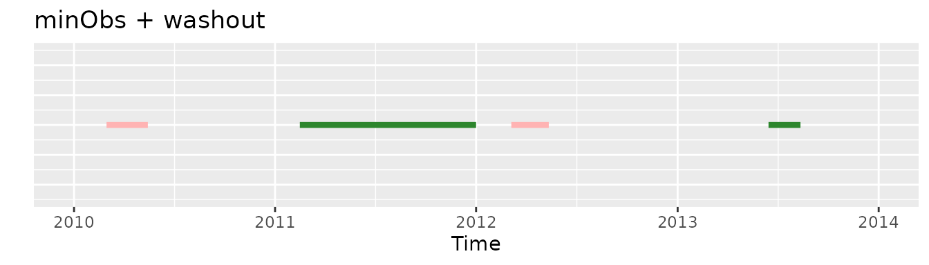 If we would apply the initially the washout requirement and then the minObs one we would end with only the last record selected: