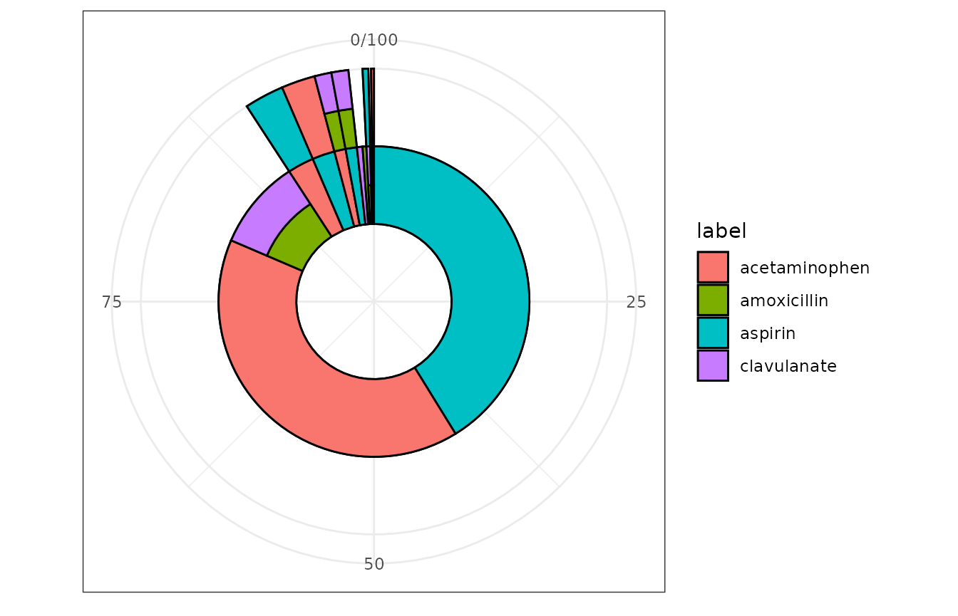 TreatmentPatterns::ggSunburst(treatmentPathways = treatmentPathways_data)